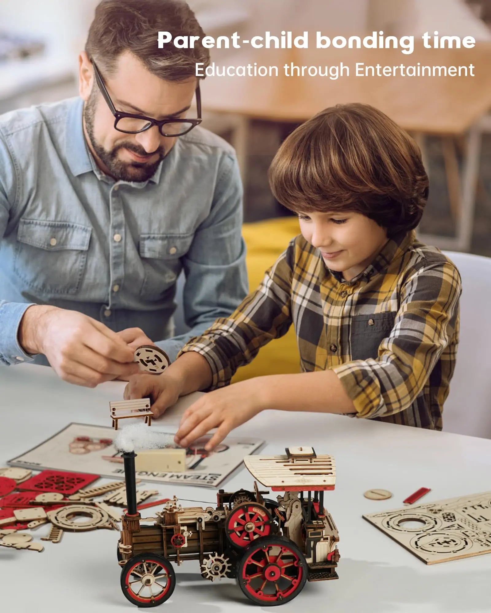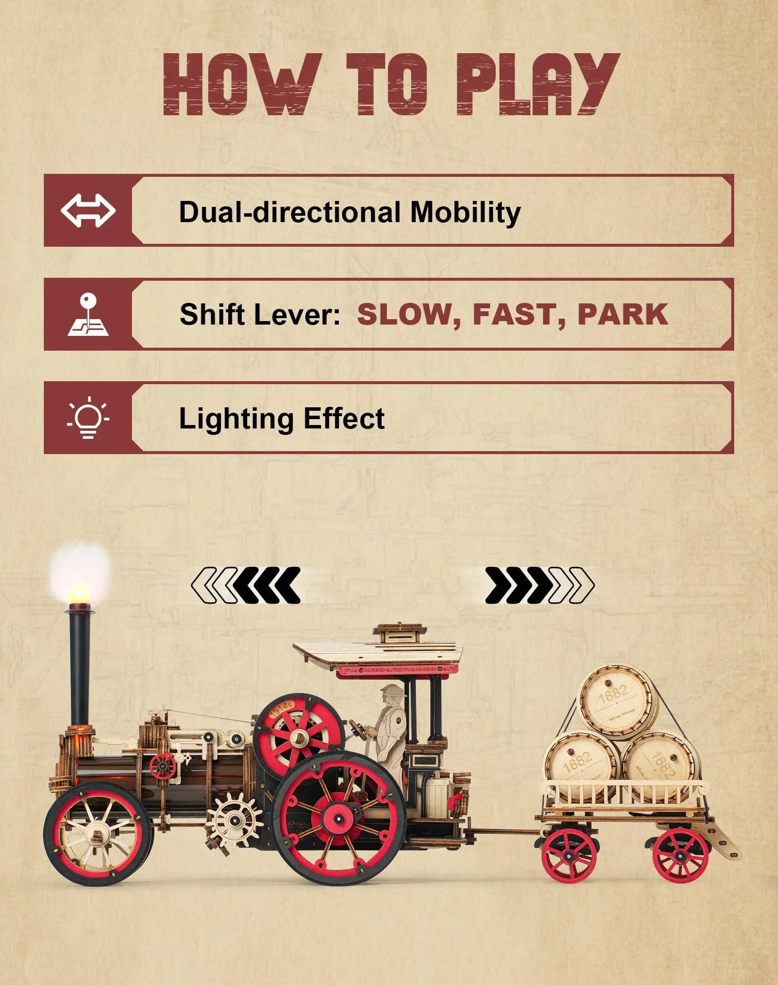 Revivez l'ère de la vapeur avec ce puzzle 3D en bois du tracteur locomotive. Ce modèle détaillé à l'échelle 1:28 reproduit une locomotive à vapeur rétro, offrant une expérience d'assemblage captivante pour les passionnés de modélisme.